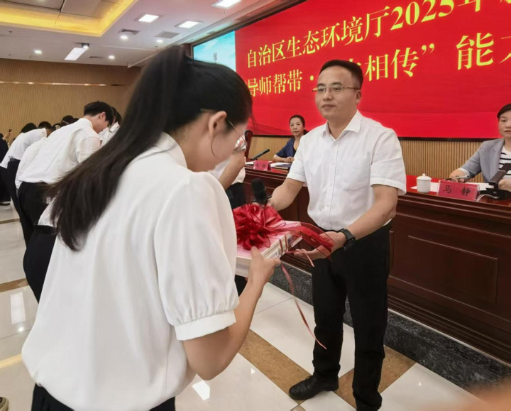 在书籍与纪念牌的传递中,生态环境战线高层次人才与新入职生态环境工作者完成了一次温暖而庄重的交接。9月25日,自治区生态环境厅启动“导师帮带、薪火相传”能力续航提升工程,标志着环保新兵培养计划正式拉开序幕,该计划旨在加快建设与生态环境保护事业发展相适应的干部队伍。